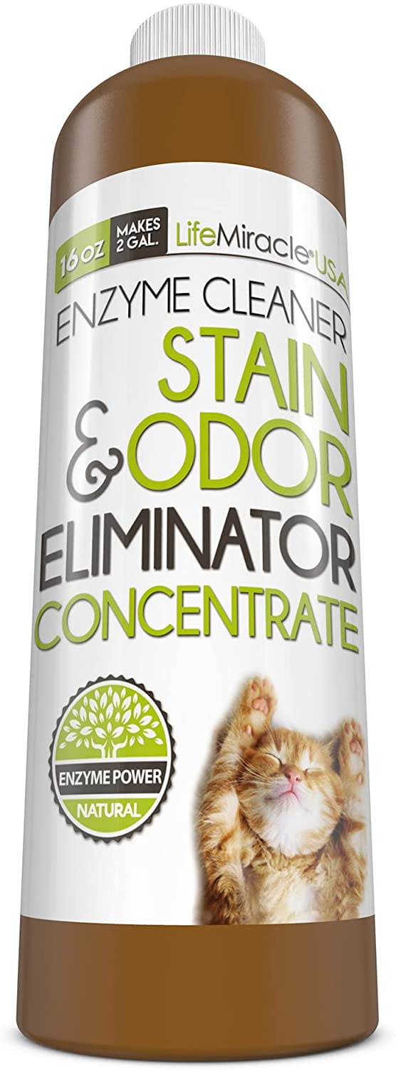 Amazon Com Pet Stain Odor Miracle Enzyme Cleaner For Dog Urine Cat Pee Feces Vomit Enzymatic Solution Cleans Carpet Rug Car Upholstery Couch Mattress Furniture Natural Eliminator S M 32fl Oz